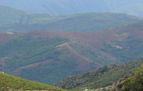 La flore est répartie entre les forêts de pin, d’acacia, les forêts de châtaigniers (exploitées par endroits) mêlées de bruyère arborescente (ou bruyère blanche), de bruyère callune, de genêts, de ronce, de noisetier, d’aubépine, de sureau,